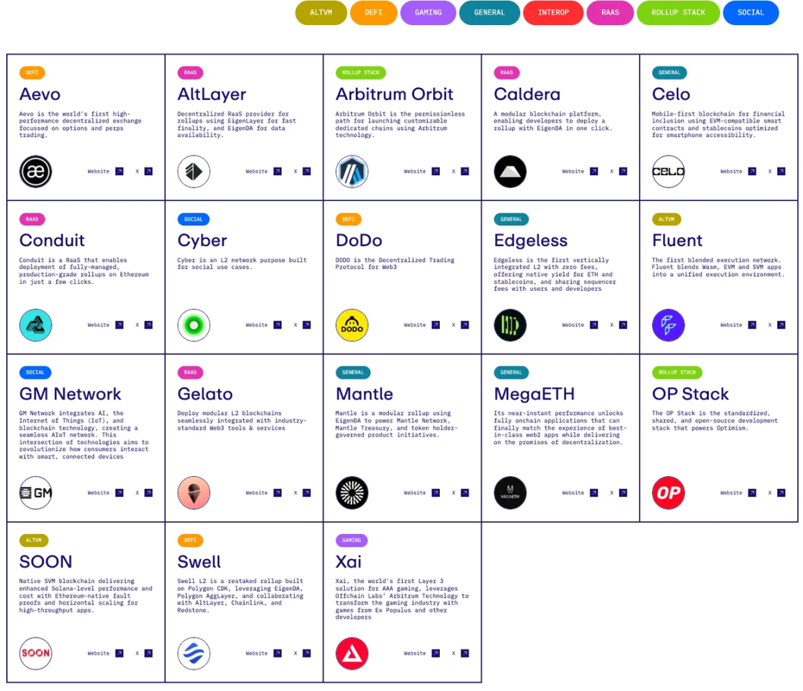 الخاصية الأكثر وضوحًا لشركاء إيكو EigenDA هي: أن معظم مشاريع RaaS (Rollup كخدمة) مثل AltLayer و Caldera و Conduit و Gelato قد اختارته. وهذا يدل على أن المشاريع التي تستعين بمصادر خارجية لتشغيل Rollup قد تختار عن عمد DA ذات تكاليف تقديم بيانات منخفضة ولا تتطلب تشغيل عميل خفيف بشكل مستقل، لأنها قد تخلت إلى حد كبير عن اللامركزية.