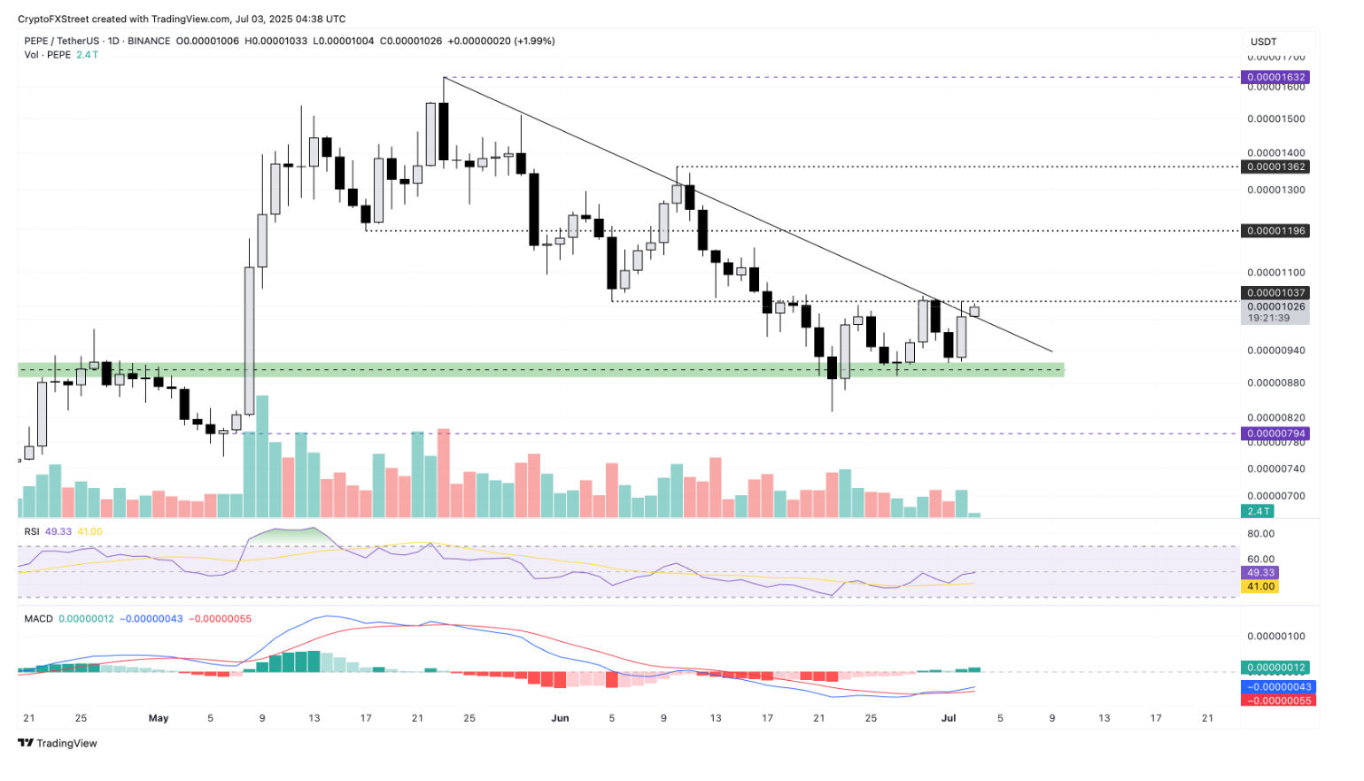 للتأكيد على اتجاه الارتفاع، يجب أن يثبت PEPE فوق مستوى المقاومة $0.00001037 الذي تم اختباره يوم الأربعاء.