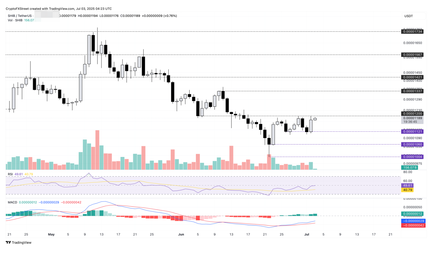 هدف الارتفاع المحتمل يشير إلى ذروة 8 يونيو $0.00001196.