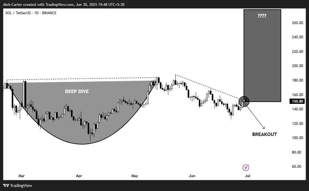 سعر تداول SOL الحالي حوالي 157 دولار، وقد حظي باهتمام كبير بسبب كسره اتجاه هبوطي كبير. يشير محللو الرسوم البيانية بناءً على الأنماط الفنية إلى أن سعره قد يرتفع إلى 280-300 دولار. لقد تشكل اختراق كوب مع مقبض على الرسم البياني اليومي، مما يزيد من حماس السوق حول الاستخدام المتزايد لهذه الشبكة. في سوق التنبؤ Polymarket، ارتفعت احتمالية الموافقة على ETF الخاص بـ Solana قبل نهاية عام 2025 إلى أكثر من 99%، مما زاد من التفاؤل في السوق.