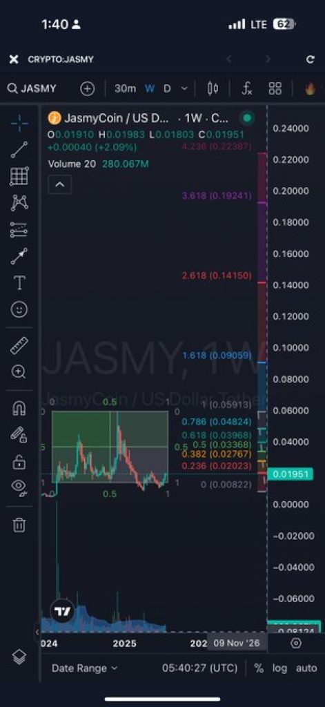 إذا استمر سعر JASMY في الاتجاه الحالي واخترق مستوى العنق، فقد تصبح هذه الامتدادات مستويات تقنية متوسطة إلى طويلة الأجل تحتاج إلى المراقبة.