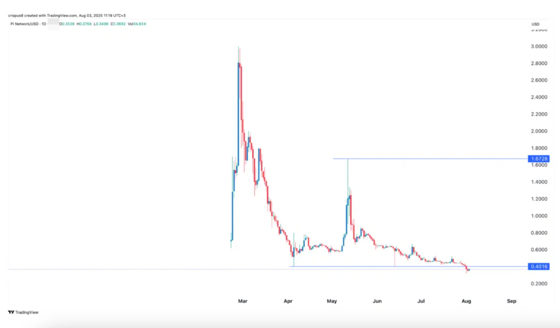 (رسم بياني لعملة Pi Network | المصدر: TradingView)