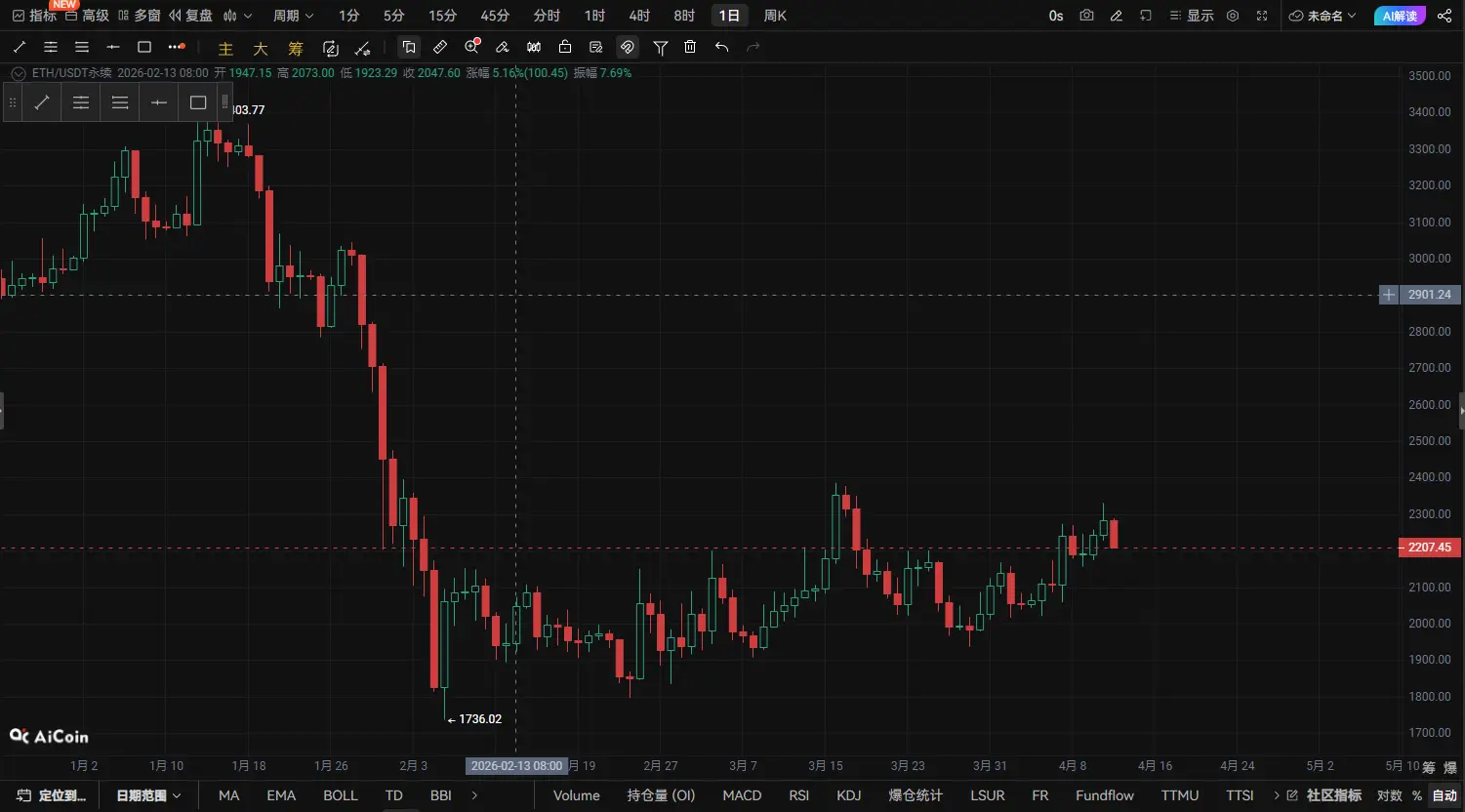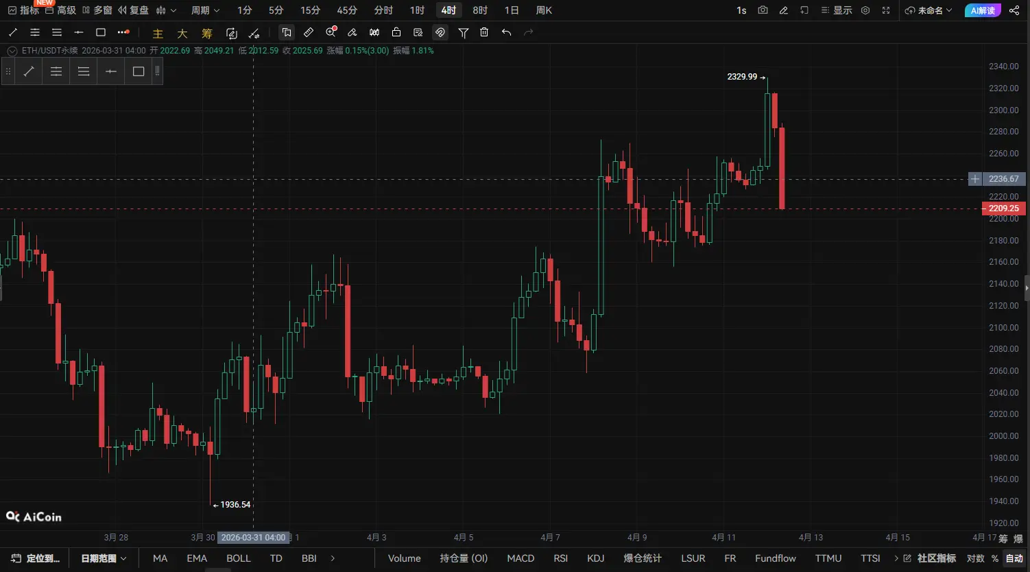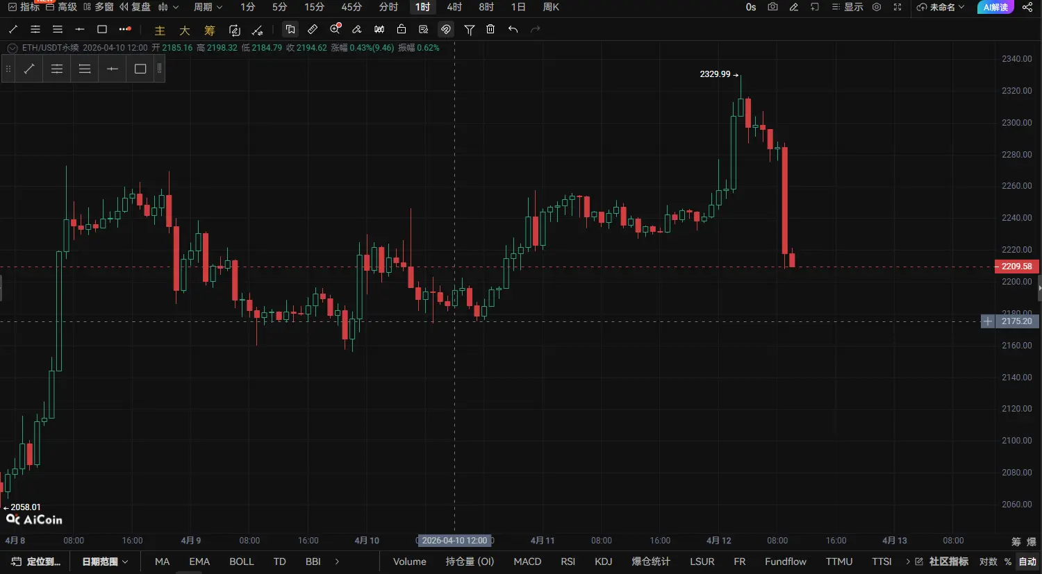 انهيار مفاجئ في سعر ETH عند مستوى مرتفع! فشل محاولة الوصول إلى 2320، معركة بين الثيران والدببة عند مستوى 2200 (تحليل عميق للسوق بتاريخ 12 أبريل)