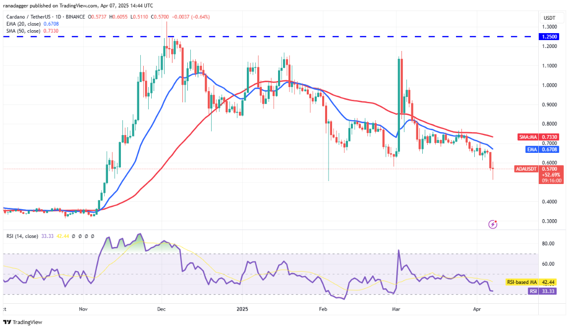 Cardano (ADA) ha retrocedido y ha roto el nivel de soporte de $0,58 el 6 de abril, lo que indica que los osos aún controlan el mercado.