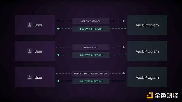 金庫プログラムは流動性再ステーキングトークン(VRT)を管理し、DAOまたは自動化されたプロトコルを通じて異なる再ステーキング戦略をカスタマイズする役割を担っています。これはユーザーが再ステーキングに参加するための主要なインターフェースです。たとえば、EigenLayerの再ステーキングの役割はソラナ上で再ステーキングプログラムによって担われ、金庫プログラムはEtherFiに似ており、ユーザーとコアの再ステーキングプロトコルの間で流動性層として機能します。