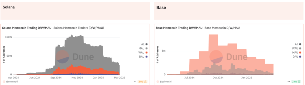 下のグラフからわかるように、取引量やアクティブトレーダーの数において、SolanaチェーンはBaseチェーンを大きく上回っており、これがBelieveの拡張により大きな動力を提供しています。さらに、Alliance DAOの支援を受け、Nikita BierとTolyのリツイートも、その成長を加速させました。