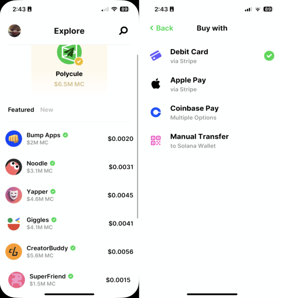 それに加えて、Believeのユーザーインターフェースはより直感的でシンプルです。彼らはまた、モバイルアプリを開発し、App Storeにリリースしました。ユーザーはウォレットやクレジットカードを通じてトークン資産を直接購入できます。一方、Clankerは現在ウェブ版のみで、ウォレットを使用してのみ購入でき、伝統的なWeb3スタートアッププラットフォームに似ています。