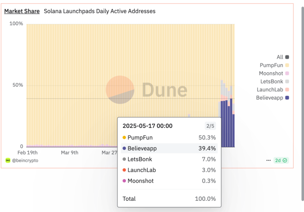 過去、Pump Funはほぼトークン発行プラットフォームの独占的な地位にあり、自由に$SOLで取引でき、ユーザーはそれを主な選択肢として使用せざるを得ませんでした。しかし今、Believeの台頭がこの状況を打破し、個人投資家により競争的な選択肢をもたらし、集中化プラットフォームによる流動性リスクを減少させました[17]。