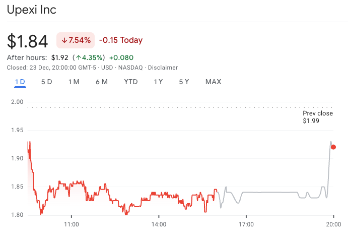_Upexiは火曜日のアフターアワーズ取引で小さな反発を見せ、当日の損失を取り戻しました。出典: _Google Finance