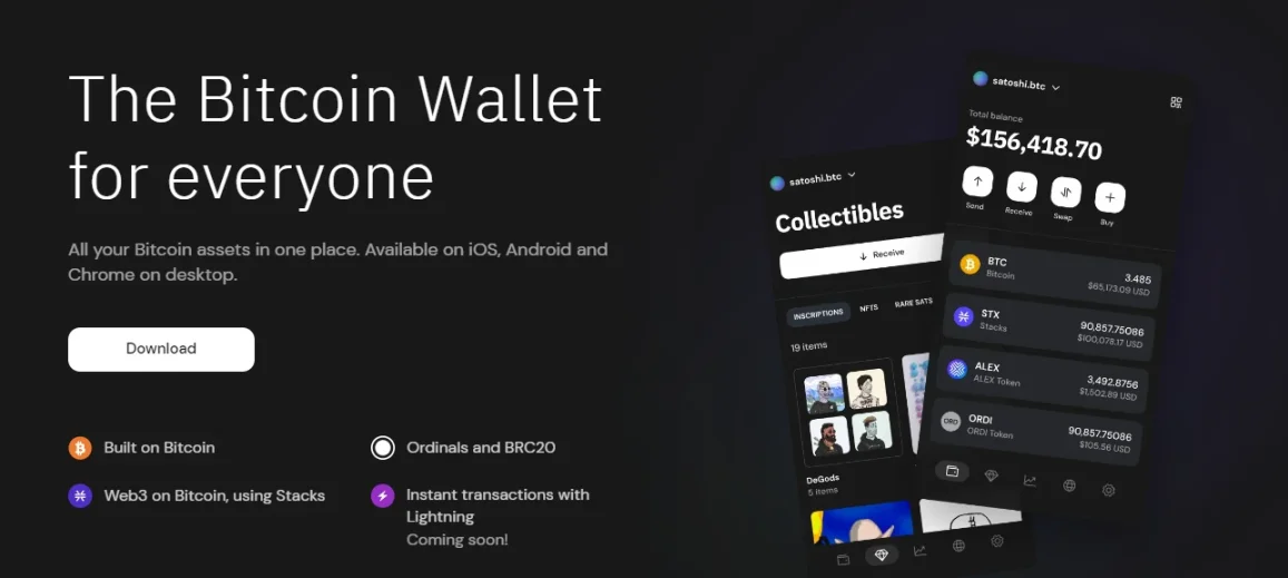 現在、ウォレットは Chrome、Firefox、Brave のブラウザ拡張機能と、MacOS、Windows、Linux システムのデスクトップ バージョンをサポートしています。ブラウザ拡張機能バージョンでは、アプリケーションへの接続、STX の購入、NFT のミントと購入、Ledger ハード ウォレットの使用が可能です。デスクトップバージョンでは、ステーキングに参加してビットコインを獲得し、レジャーハードウォレットを使用して資産を保護できます。