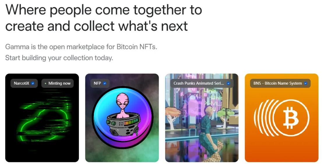 Gamma は、Stacks エコシステム内で最大の NFT 取引プラットフォームであり、NFT マーケット、NFT Launchpad、WEB3 ソーシャル プラットフォームの 3 つのコア部分で構成されています。 Gamma の目標は、ビットコイン エコシステムにコレクター、クリエイター、投資家を有機的に結び付けて、NFT を探索、取引、表示することです。ユーザーは Gamma ボットを使用して、独自のデジタル作品を鋳造し、収集または販売できます。パブリックチェーン上の他の主流のNFT分散型取引所と同様に、Gamma.ioを使用してコーディングなしでビットコインNFTを作成することもでき、ユーザーはわずか数分でビットコインNFTを正常に作成できます。
