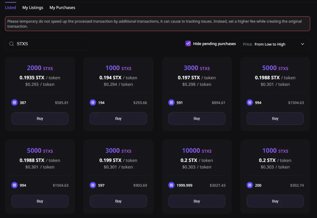 スタックス碑文市場の全体的な市場価値は比較的小さいですが、二次取引の場所はすでに存在します (以下に示すように)。バージョンを繰り返した結果、このプラットフォームで STX 20 プロジェクトを取引する基本的なエクスペリエンスは満足のいくものになりましたが、まだいくつかの不満があります。