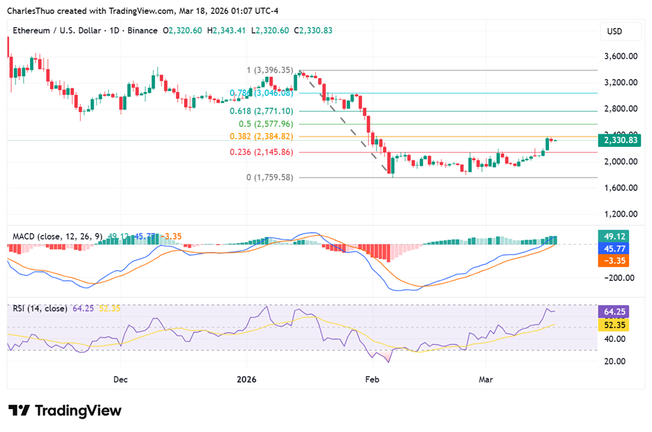 現在の市場構造は、イーサリアムが2,320ドル以上を維持し、2,380ドルを突破すれば、上昇の勢いが再び強まる可能性を示しています。