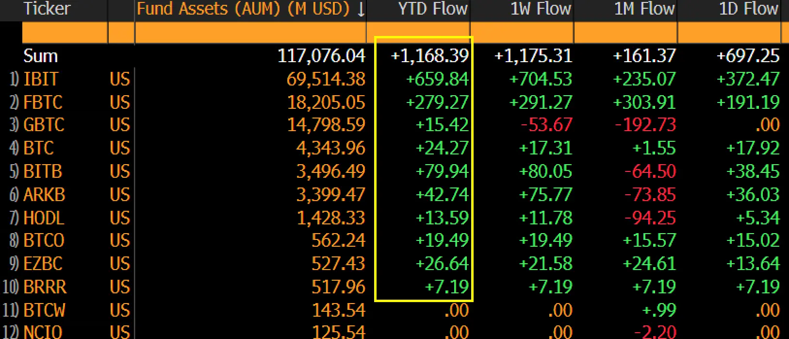 He pointed out that there have been more than $1.2 billion in inflows in the first two trading days of the year, “with everyone eating,” meaning nearly all funds have seen inflows. The WisdomTree Bitcoin Fund (BTCW) was the exception.