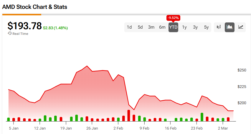 AMD stock was up 1.48% on Wednesday, but has fallen 9.52% year-to-date. The stock has also rallied 87.81% over the past 12 months, largely on the back of the AI boom.