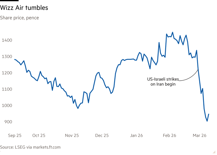 Shares in Wizz have fallen more than 20 per cent since the US and Israel began bombing Iran on February 28. That extended a decline of 14 per cent last month after the airline’s main shareholder, Indigo Partners, offloaded a near 10 per cent stake.