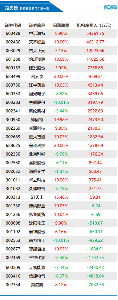 Dragon Tiger List丨Institutions sold these 10 stocks today, bought Tianqi Lithium for 4.62