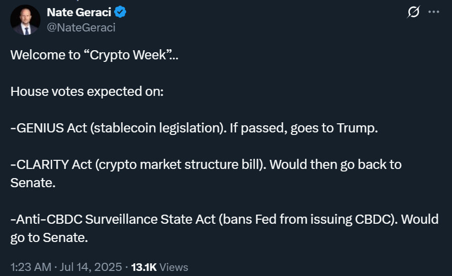 Notably, the United States House prepares to vote on three key crypto-related bills this week.