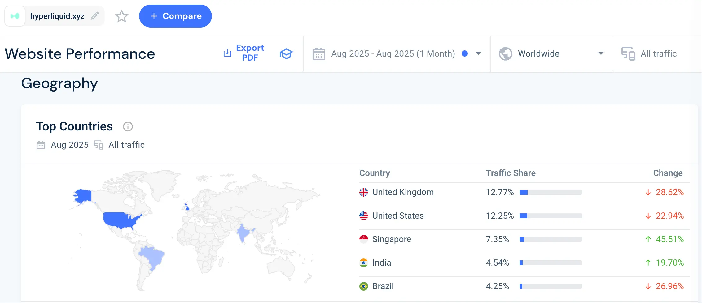 Desenvolvimento da Comunidade: Hyperliquid possui uma comunidade global altamente ativa, com a região da Europa e América do Norte superando a região de língua chinesa. A equipe oficial é muito ativa em redes sociais como X (Twitter), com uma quota de mercado que se mantém em primeiro lugar há muito tempo, criando um efeito de rede no campo das DEX perpétuas.