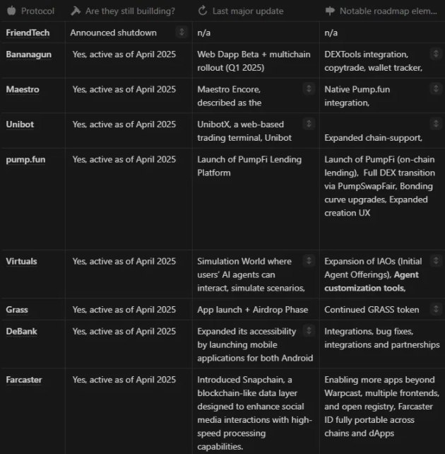 Есть и некоторые медленно развивающиеся проекты, такие как Grass, DeBank, Farcaster, у которых есть свои особенности: спекулятивная доходность, социальная идентичность DeFi и децентрализованные социальные сети и т.д. Они не являются мимолетными проектами и не исчезли, они просто тихо развиваются после периода спекуляций.