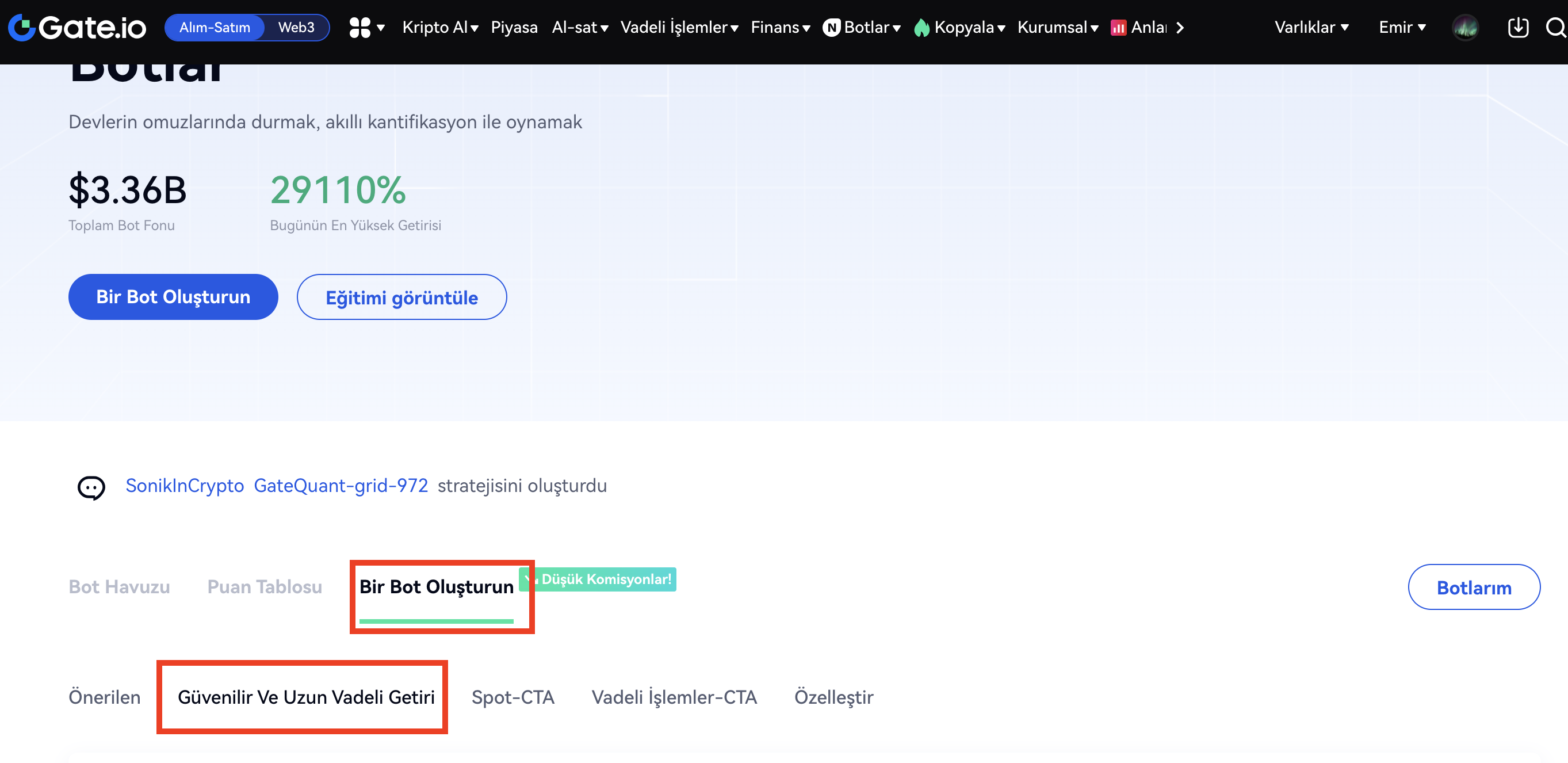 1."Copy Trading" e gidin ve "Stratejiler Şablonu" na dokunun.