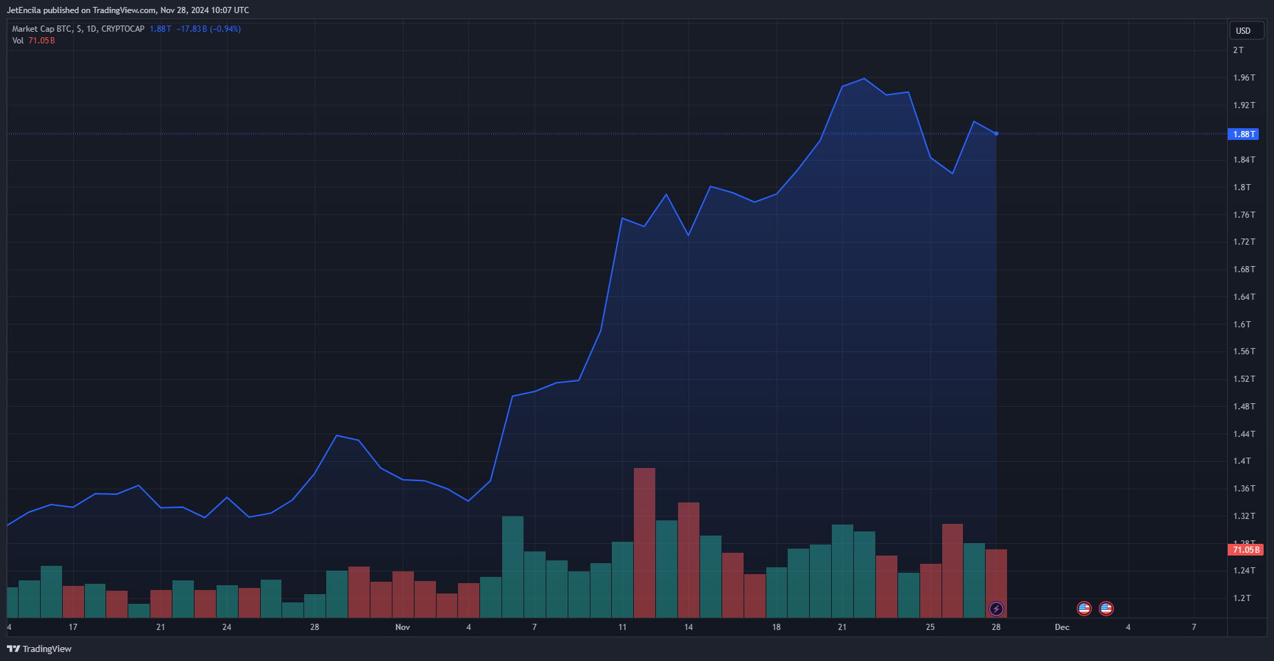 Bitcoin market cap currently at $1.88 trillion. Chart: TradingView.com