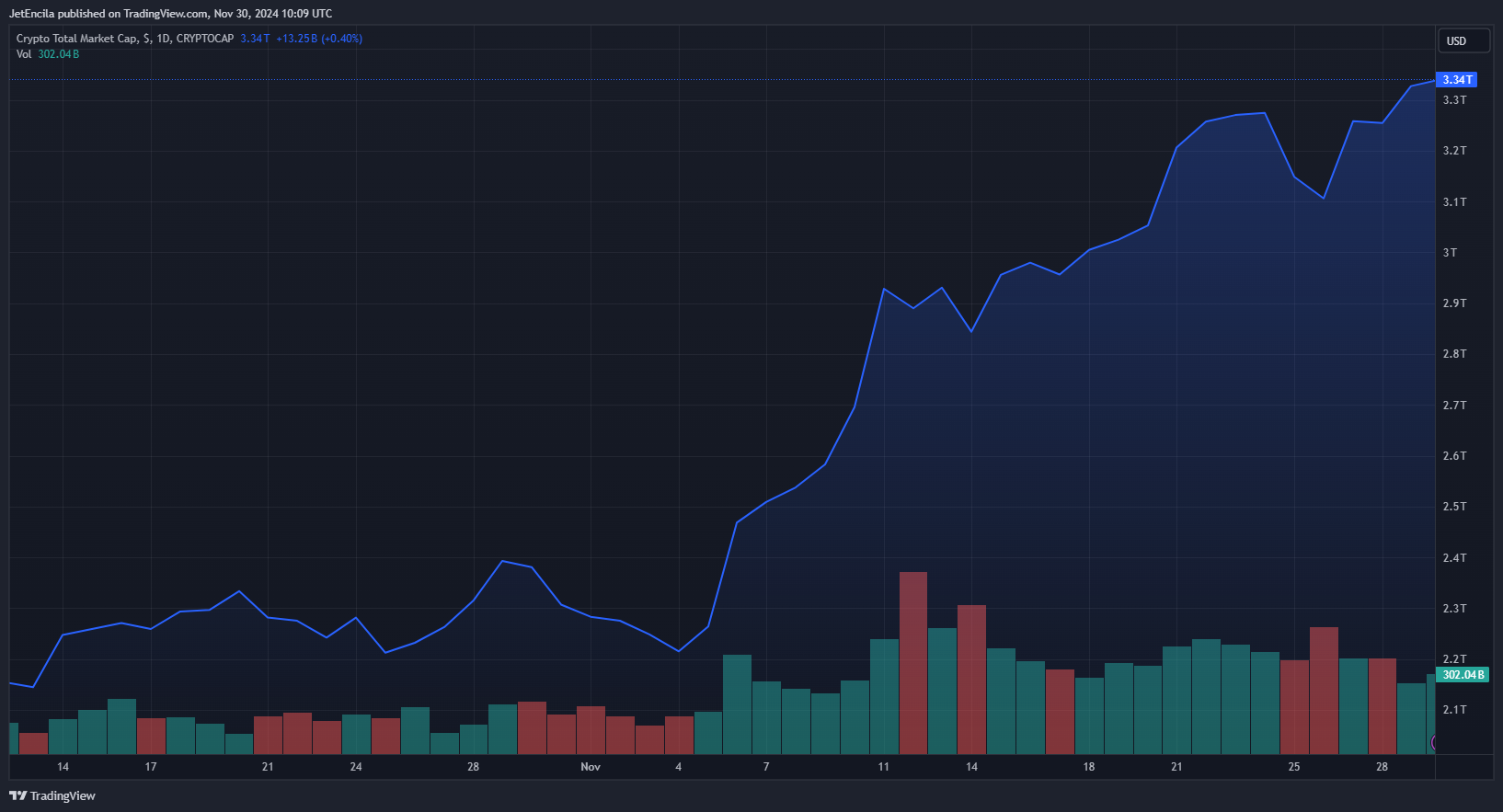 Total crypto market cap currently at $3.3 trillion. Chart: TradingView### Stablecoin Limits To Regulate The Industry