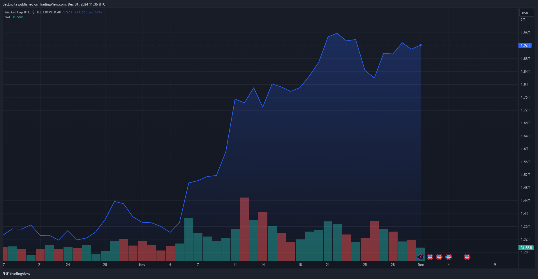 Bitcoin market cap currently at $1.92 trillion. Chart: TradingView.com