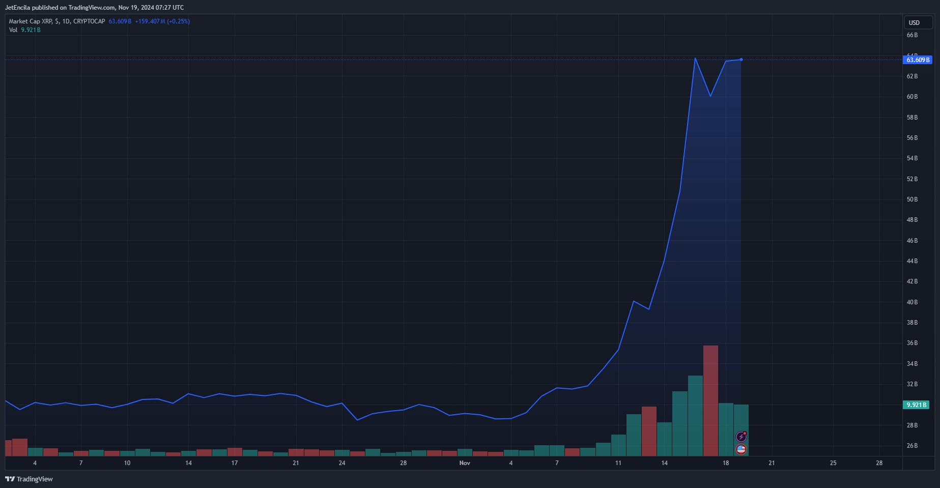 XRP peaked to $1.26, marking a new two-year-high for the coin. The uplift in the value of XRP has happened at a time when the rest of the cryptocurrency market anticipates some regulatory overhauls in the US, and more so after the results of the US elections. With over 90% gains within seven days, XRP’s price rally has brought back the excitement of investors towards the Ripple token.