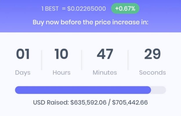 Best Wallet further emphasizes early adoption by implementing a dynamic ICO pricing model, which sees BEST’s price rise over time. BEST currently sells for $0.02265000 each, and that price won’t change until tomorrow or until the presale raises another $70,000.