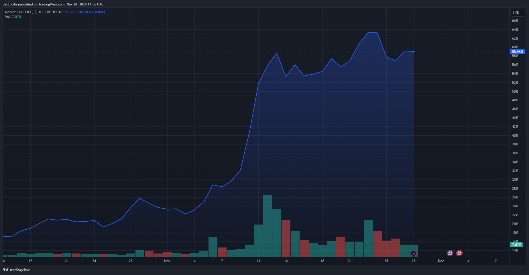 DOGE market cap currently at $58.9 billion. Chart: TradingView.comFor Vivek, he wanted “mass reductions” in the Department of Education. President-elect Donald Trump has been calling for the dismantling of the department for many years now and it seems that it will happen in his return to the White House.