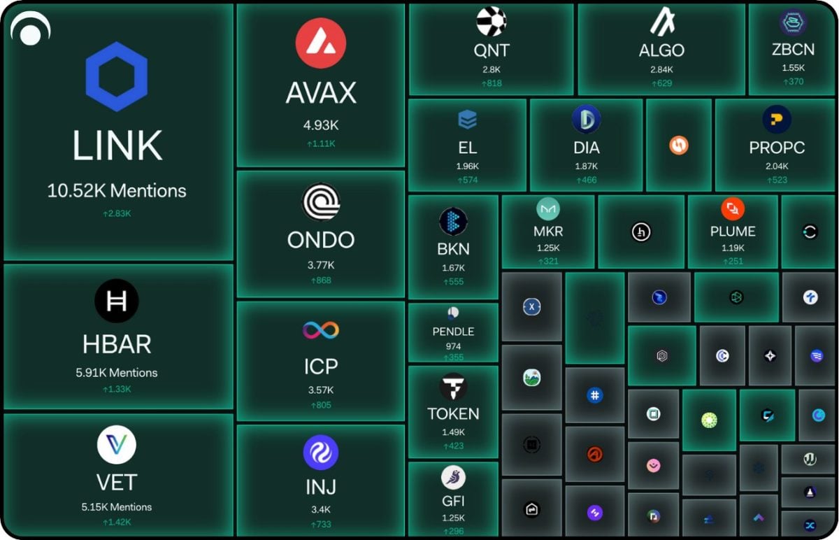 Соціальні згадки зростають для Chainlink, Hedera та VeChain, оскільки RWA набирають популярності - Крипто Новини Флеш