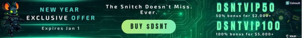 Chương trình này có hiệu lực đến ngày 1 tháng 1, vì vậy hãy đảm bảo tham gia presale của DeepSnitch AI. Nếu bạn muốn cập nhật mới nhất, hãy truy cập X hoặc Telegram.