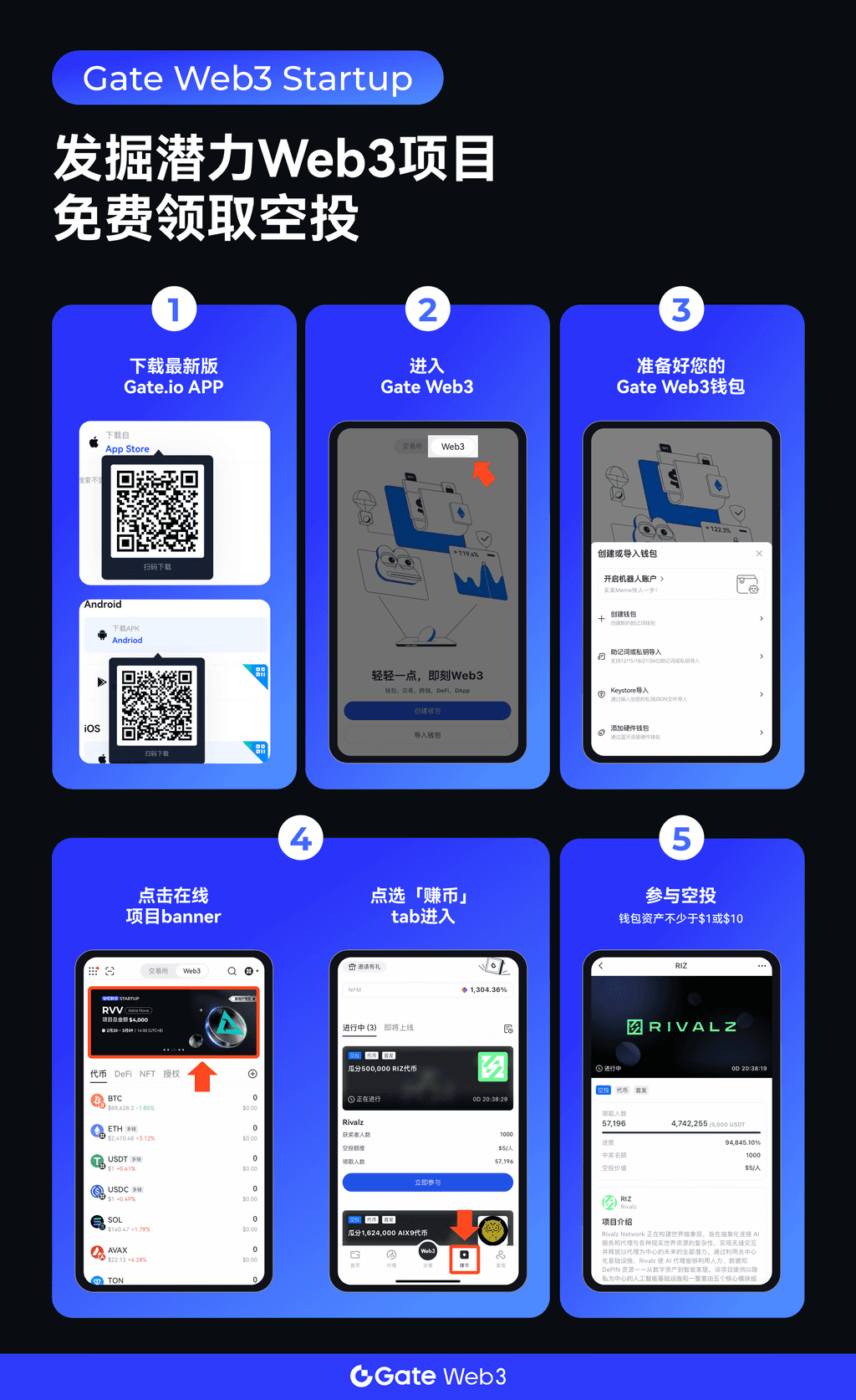 Để đền đáp người dùng trên nền tảng, Gate.io chính thức ra mắt “Gate Web3 Startup” vào ngày 3 tháng 7 năm 2023, thực hiện kế hoạch Airdrop không định kỳ cho các dự án Khối, người dùng Ví tiền của Gate Web3 có thể nhận được các lợi ích Airdrop từ Danh sách cho phép bằng cách tham gia Web3 Startup, như Token, Token không thể thay thế, Danh sách cho phép.