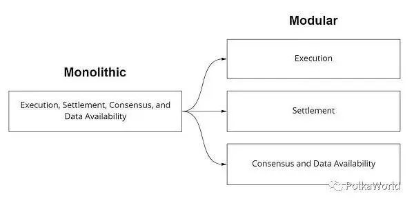 我們在 Polkadot 中也經常聽到 「模組化區塊鏈」 的概念,但這和上面所說的模組化不太一樣。