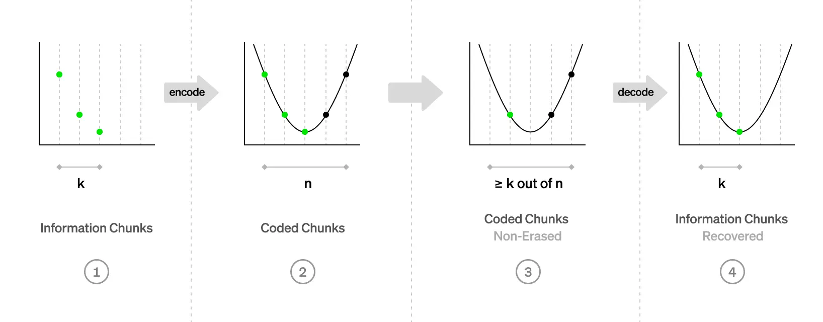 像Celestia 和Avail 這樣的模組化DA 使用諸如糾刪碼等技術,將資料分割成小分片,並允許輕節點隨機選擇分片的子集進行下載和驗證。