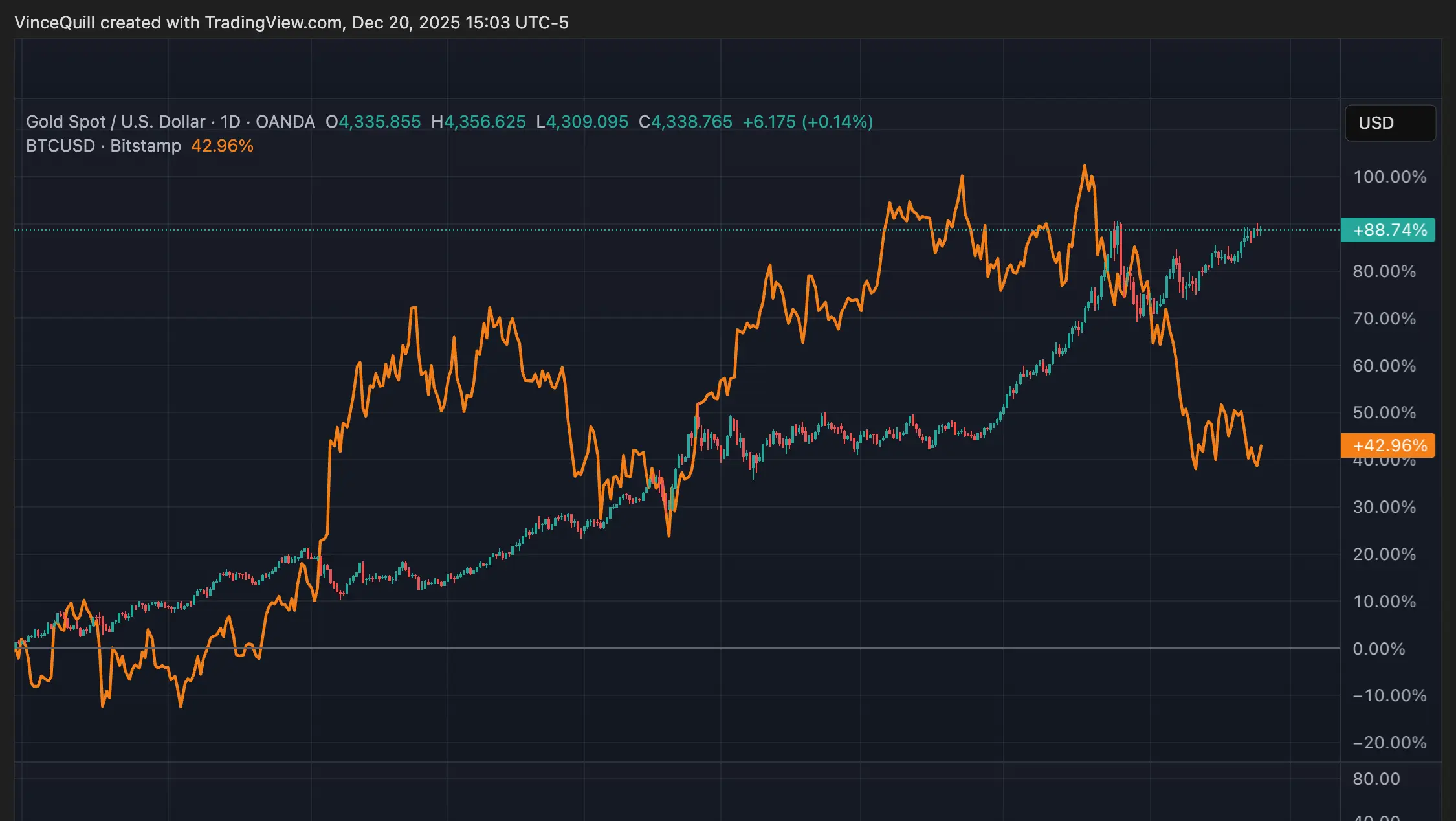 資料來源:CryptoNewsNet 原文標題:賣比特幣換黃金?一位分析師說還沒那麼快 原文連結:https://cryptonews.net/news/bitcoin/32169009/ 比特幣 (BTC) 的長期表現將優於黃金,BTC 持有者不應在其飆升至每盎司超過 4,000 美元的過程中出售持幣轉而投資黃金,這是比特幣倡導者、教育者及市場分析師 Matthew Kratter 的看法。