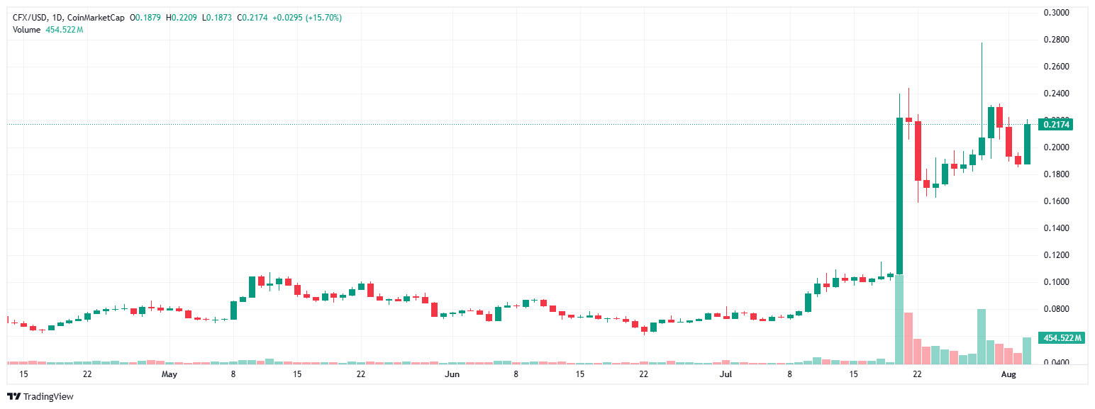 !crypto FORM 价格走势图 |来源:TradingView### Conflux (CFX) — Layer-1 区块链公开吸引强劲购买力